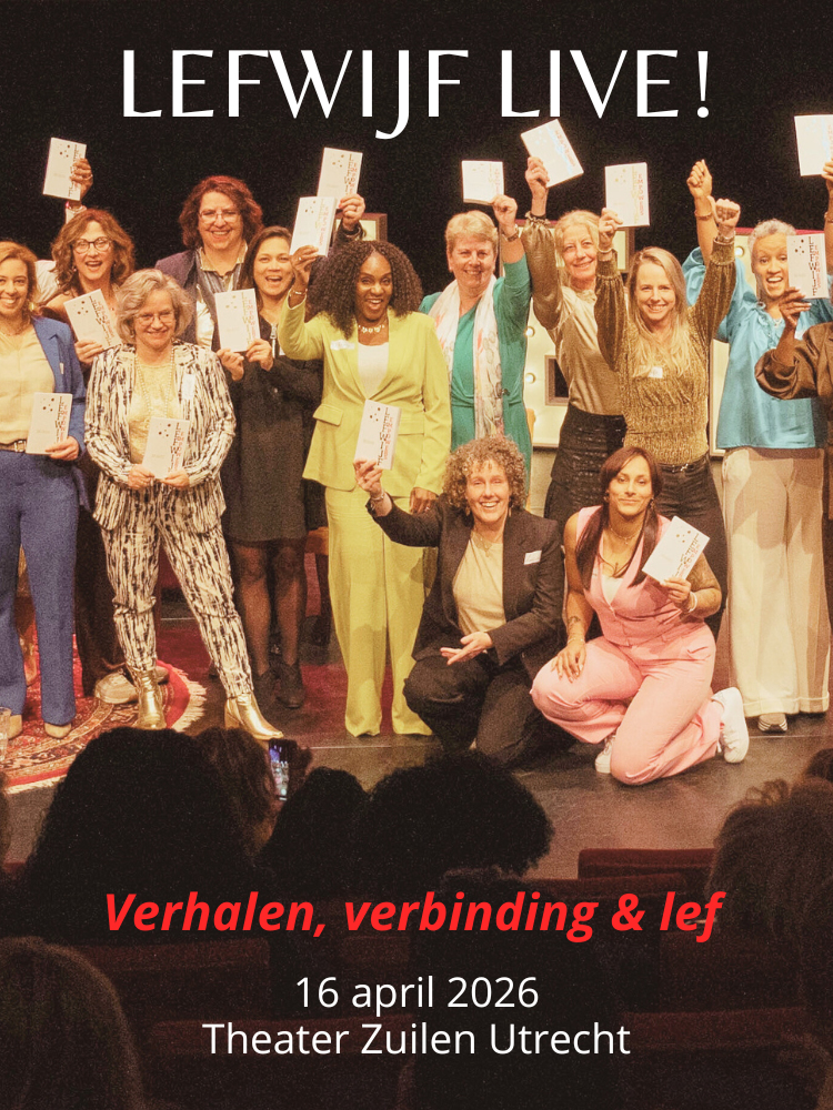 Een zaal vol krachtige prachtige vrouwen, verhalen die recht uit het hart komen, optredens die je raken, lachsalvo’s én diepe verbinding. Precies dat gebeurt er op donderdag 16 april in het sfeervolle Theater Zuilen in Utrecht. LEFWIJF LIVE! is dé dag waarop we samen vieren, inspireren én een nieuw hoofdstuk schrijven in de Lefwijf-reis. Boekenlancering, podiummomenten vol lef en een energie die je in beweging zet!